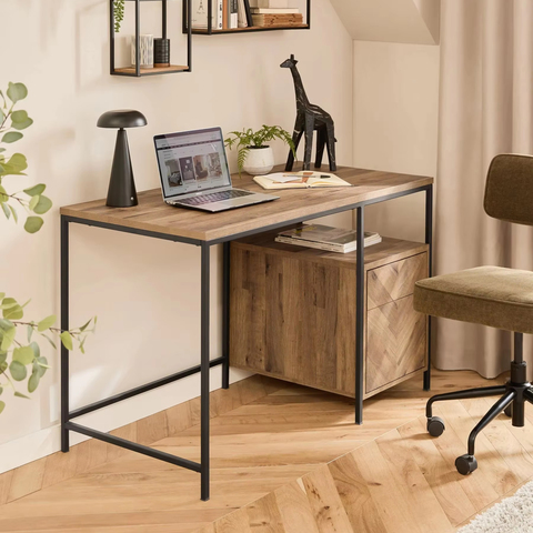 Escritorio de almacenamiento con efecto de Roble Marrón rústico industrial con superficie de trabajo extraíble, estantes grandes para gabinetes, muebles de oficina para el hogar